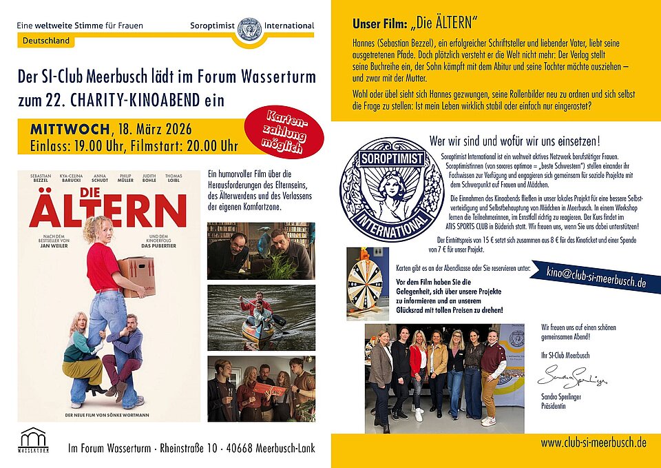 Karten gibt es an der Abendkasse oder Sie reservieren unter: kino@club-si-meerbusch.de